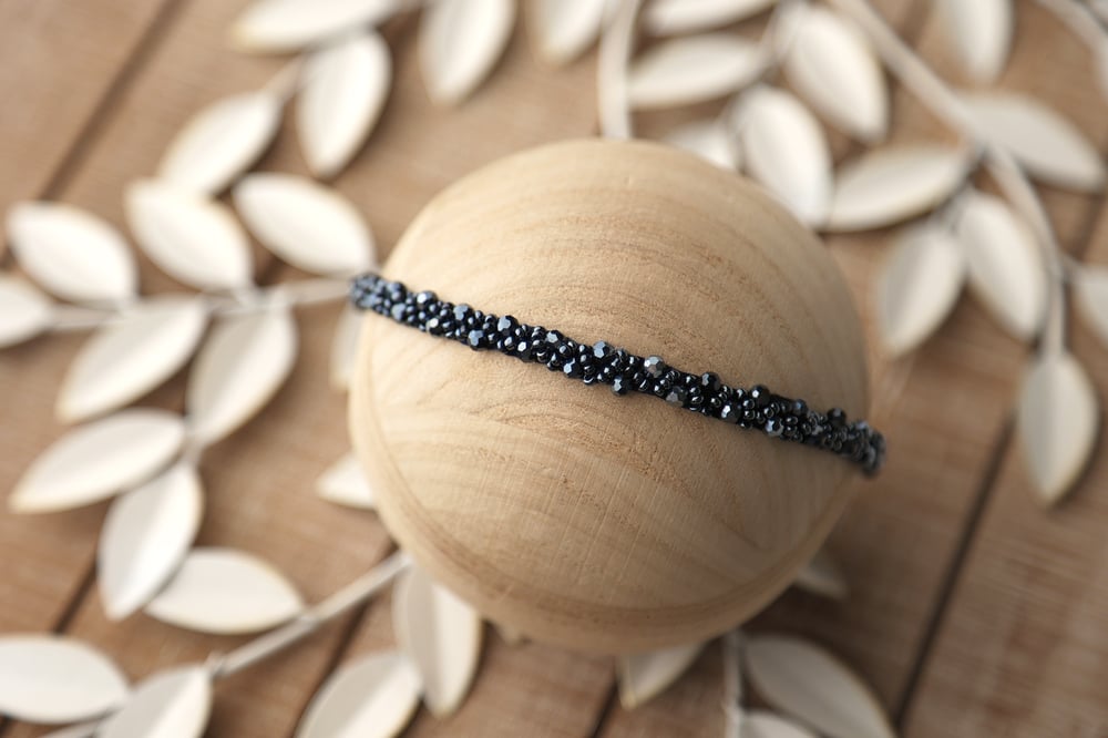 Beautiful dainty newborn halo headband made with sparkling navy beads