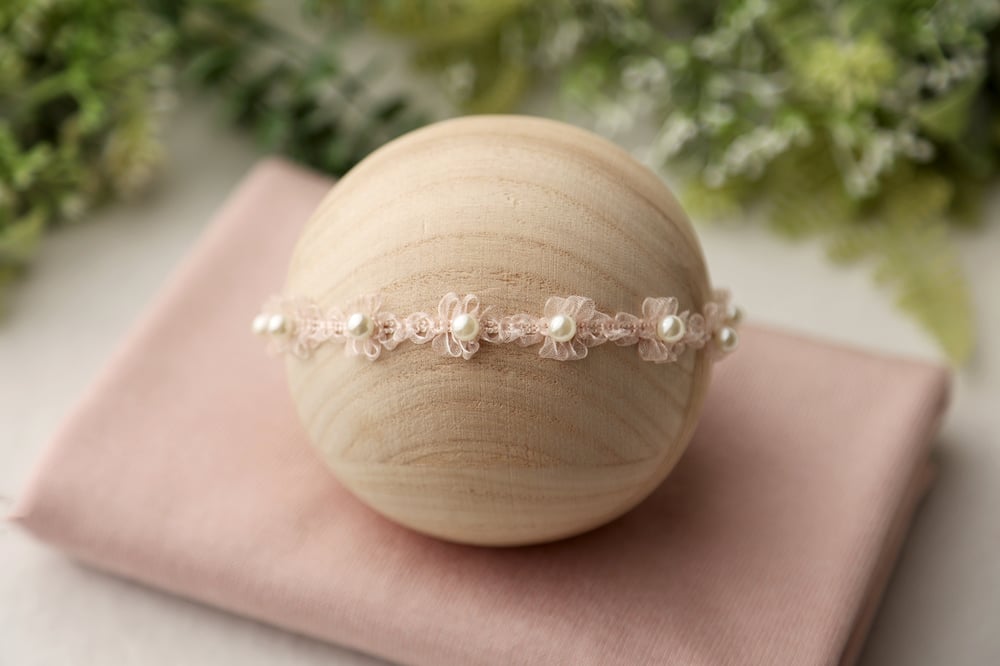 Darling beaded headband on sheer organza in blush and champagne colors. Gorgeous addition to your newborn prop collection!!