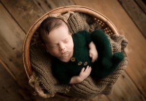 Beautiful newborn footed romper and bonnet set. Knit from super soft and fuzzy yarn. Perfect newborn photo prop or take-me-home outfit for babies under 14 days.