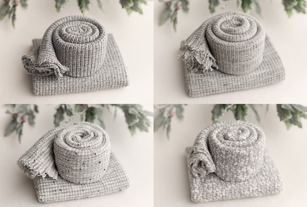 Super soft textured stretch wraps in gray shades. Each piece measures about 15x60.